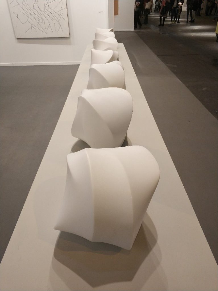 Juan Asensio presenta esta curiosa obra tallada en alabastro (Sin título 2018) y estas figuras en mármol blanco (Sin título 2016).