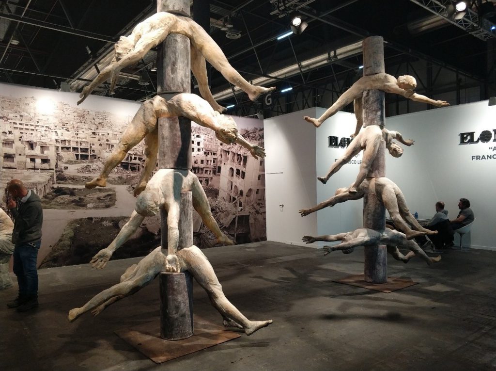 La obra que me ha parecido más espectacular, tanto por la forma como por el fondo, es la titulada “Alepo”, del gallego Francisco Leiro (Cambados, 1957), que ha convertido el infierno de la guerra de Alepo en una obra de arte (Stand de EL MUNDO EN ARCO). No tiene que ver con geología, pero si con el mundo en que vivimos. Creo que es algo así como el Guernica del 2018.