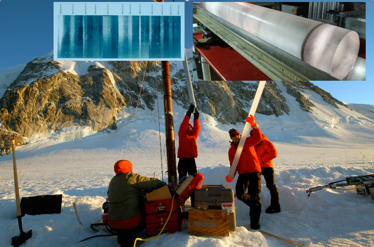 A pesar de la indudable importancia de los resultados obtenidos por Milankovitch, estos cayeron pronto en el olvido, hasta que fueron resucitados por las investigaciones realizadas mediante sondeos en el casquete glaciar de Groenlandia, donde el hielo acumulado y estratificado en pequeñas capas, cada una de ellas correspondiente a la precipitación de un año, alcanza varios miles de metros de espesor (Figura 7, obtenida de NSF, Ice Core Facility, Doug Clark, University of Washington).