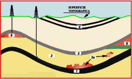 generadora, un proceso de migración del hidrocarburo y el cobijo en una trampa geológica dentro de una roca permeable o almacén, en los yacimientos no convencionales el hidrocarburo permanece dentro de la roca madre.