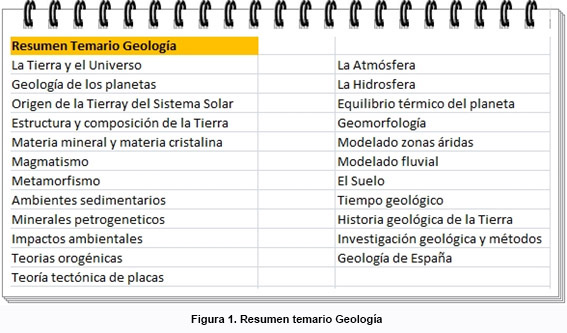 Son en total 75 temas, de los cuales 25 corresponden a temario de geología (Figura 1) y el resto a biología, física y química (en mucha menor medida).