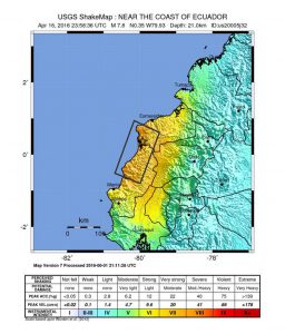 Ubicación de Jama en la zona de intensidad entre 7 y 8 grados Richter.